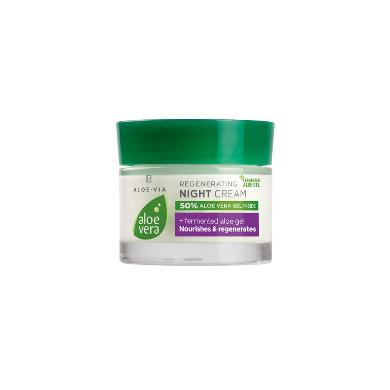 كريم LR الليلي بالألوفيرا هو كريم عناية مرطب بكثافة، مُطوّر لدعم عملية تجديد البشرة أثناء النوم. تركيبته، التي تحتوي على 50% من جل الألوفيرا النقي ومركبات نباتية مغذية، تُرطب البشرة بعمق وتُهدئها، وتُساعد على تقوية حاجز البشرة طوال الليل. تركيبته المُرممة تُساعد على استعادة نضارة البشرة أثناء النوم، لتبدو أكثر راحةً وحيويةً ونعومةً في الصباح. إنه عناية ليلية مثالية للبشرة الجافة والحساسة.